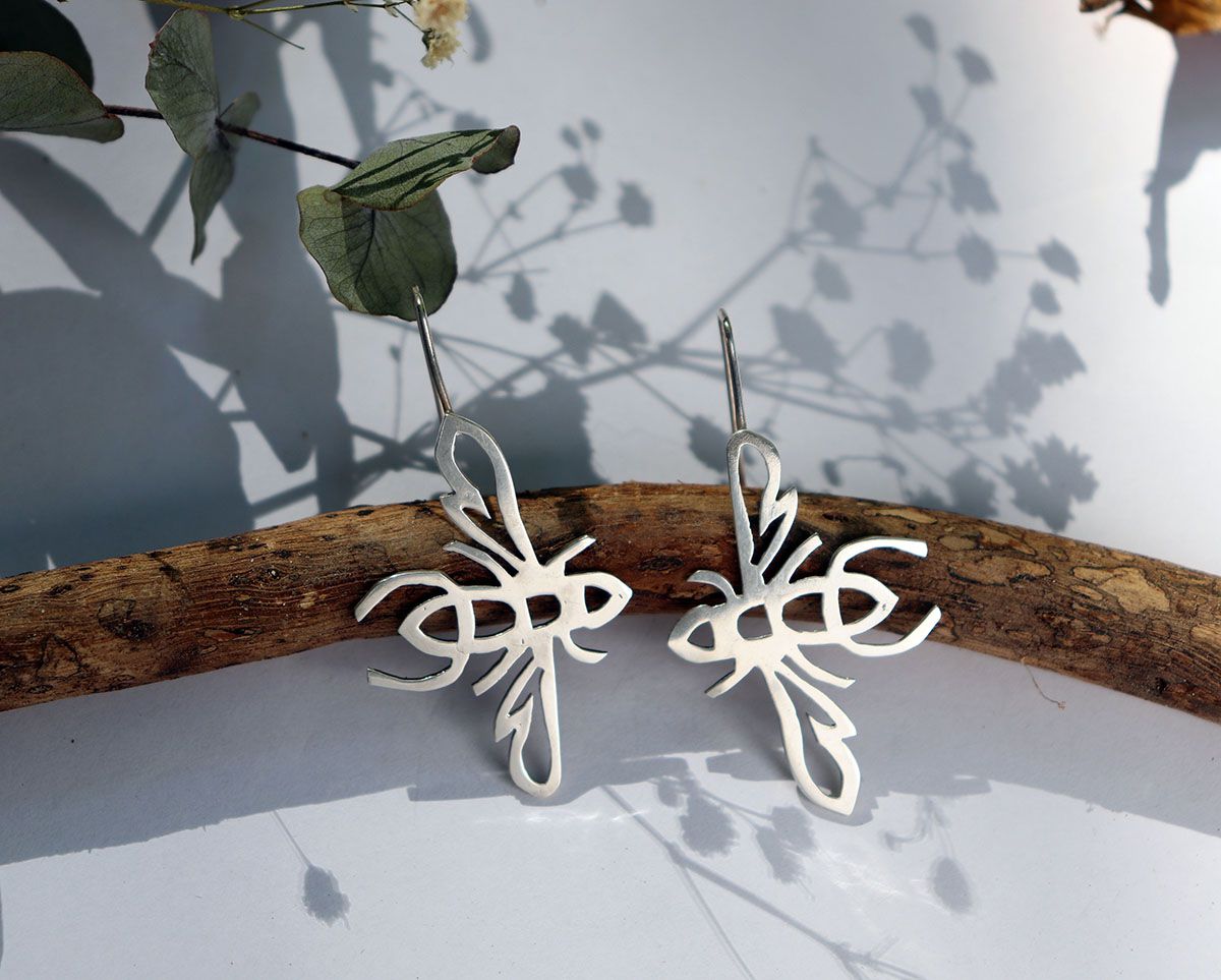 Brinco Abelha em prata 950. Recorte vazado, com gancho.