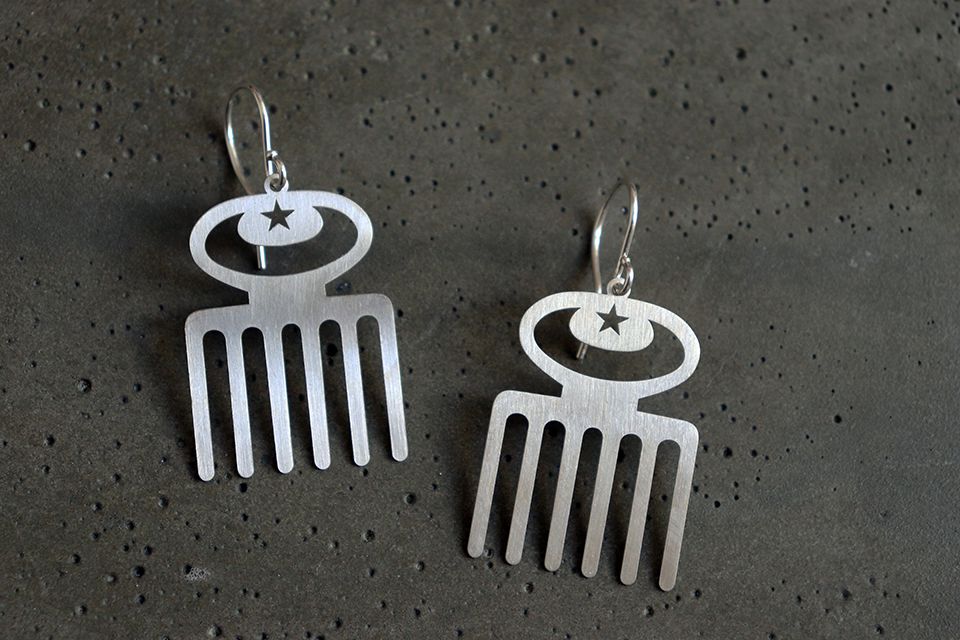 O Adinkra em forma de pente representa a beleza e feminilidade, o cuidado com os cabelos, aparecendo também como alusão à luta, resistência e ao orgulho Black Power.