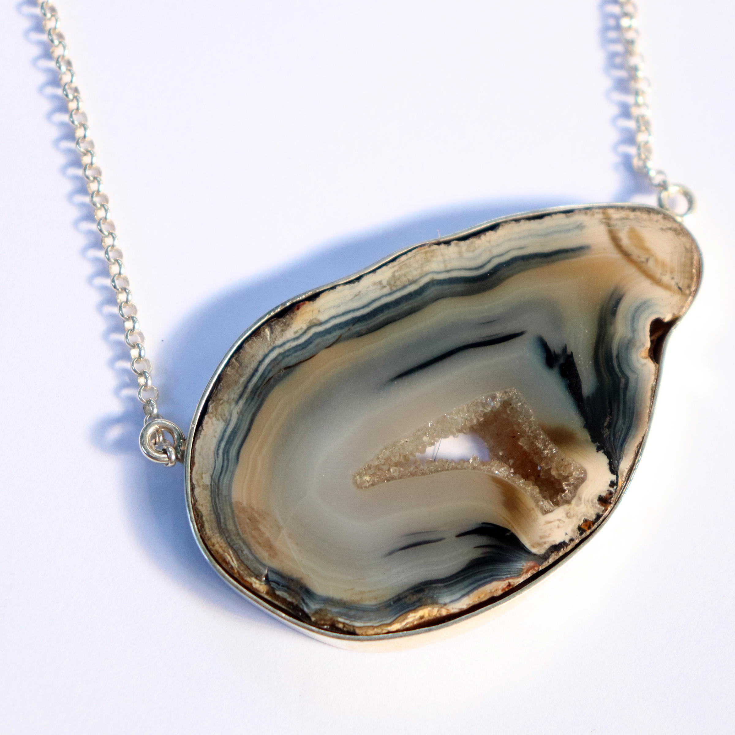 Colar com pedra àgata e corrente em prata 950