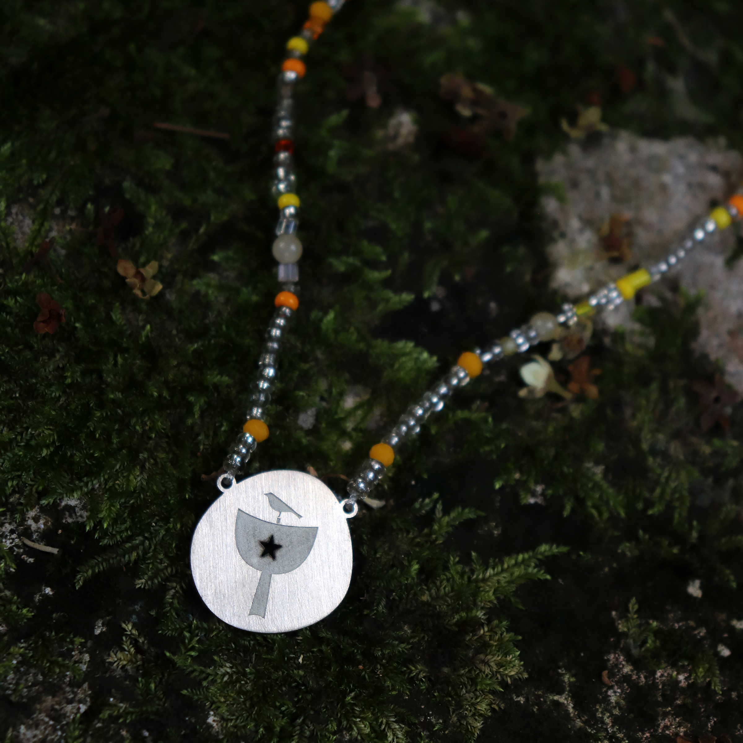 Colar com pedras brasileiras e miçangas nas cores de oxum, orixá feminino da fertilidade e prosperidade.